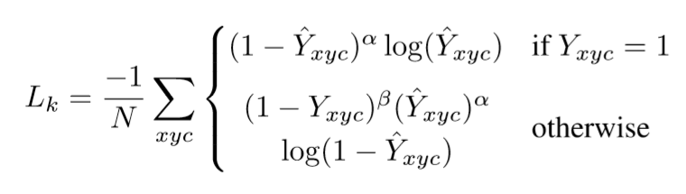 - \(N\) : 이미지 I의 keypoint의 수이다. 모든 양수의 focal loss를 1로 정규화하기 위해 선택된다.