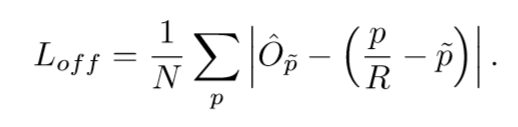 - offset 예측 : \((\hat{\delta }(xi) , \hat{\delta }(yi)) = \hat{O}(\hat{xi},\hat{yi})\)