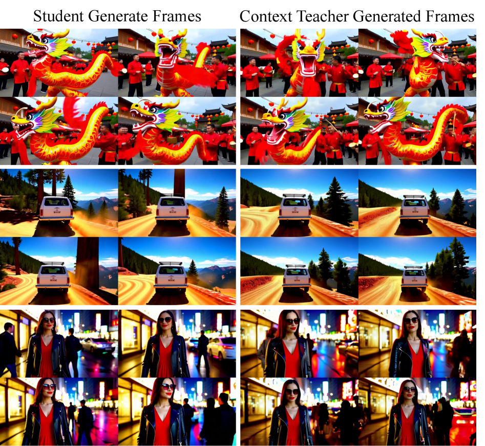 기존의 실시간 장기 비디오 생성 방식은 짧은 컨텍스트를 가진 ‘Teacher’ 모델이 긴 컨텍스트를 학습하려는 ‘Student’ 모델을 지도하는 Streaming Tuning 전략에 의존해 왔습니다. 하지만 이 과정에서 Teacher는 과거의 정보를 망각한 채 현재의 5초 내외의 정보만으로 Student를 가르치는 ‘Student-Teacher Mismatch’가 발생합니다.