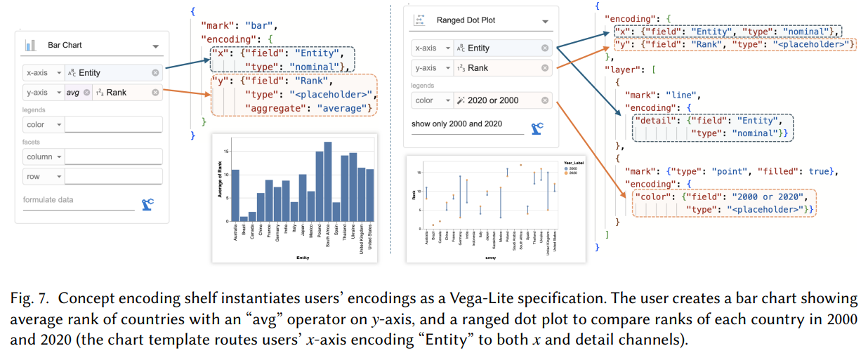 Data Formulator 2에서는 사용자가 필드를 드래그 앤 드롭하여 차트 속성을 지정할 수 있으며,