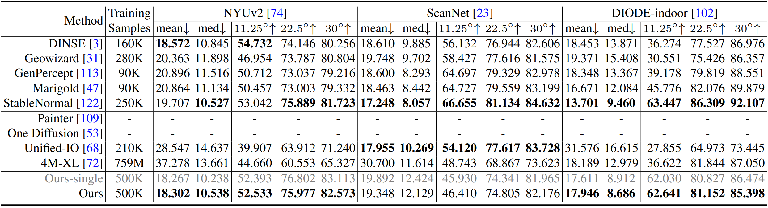 표면 법선 추정에서도 기존 SOTA 모델들과 유사한 성능을 유지.