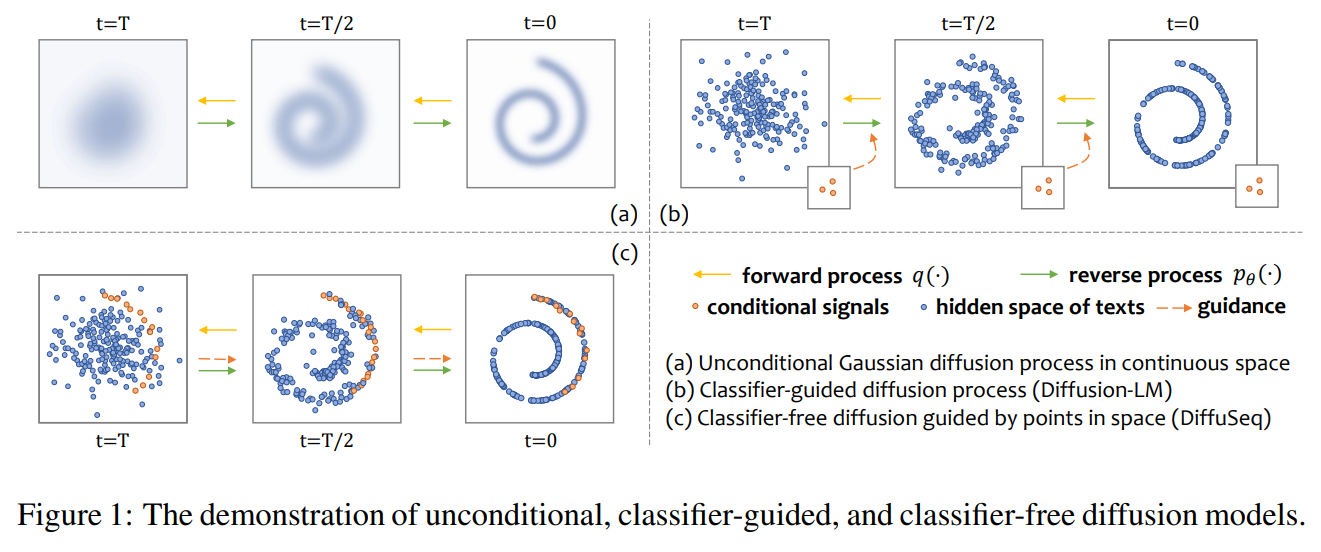 \[p_{\text{DiffuSeq}}(w^y|w^x) = \sum_{w_T^y,...,w_1^y}\int_{y_T,...,y_0} p(w^y|y_0, w^x)\prod_{t=T,...,1}p(y_{t-1}|w_t^y)p(w_t^y|y_t, w^x)\]4.5 이론적 연결