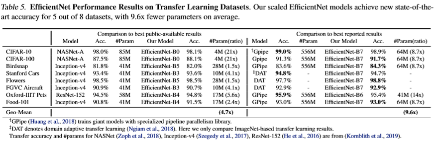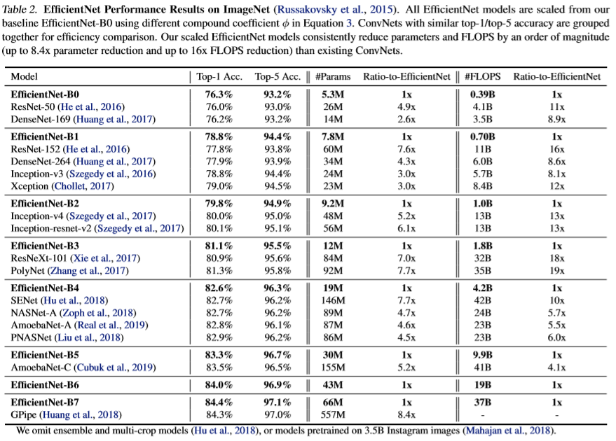 ImageNet에서의 performance다. 파라미터수가 기존 모델에 비해 작지만 그 이상의 성능을 가진다.
