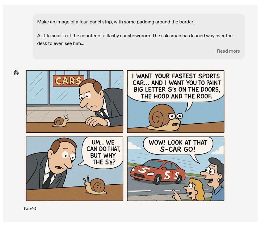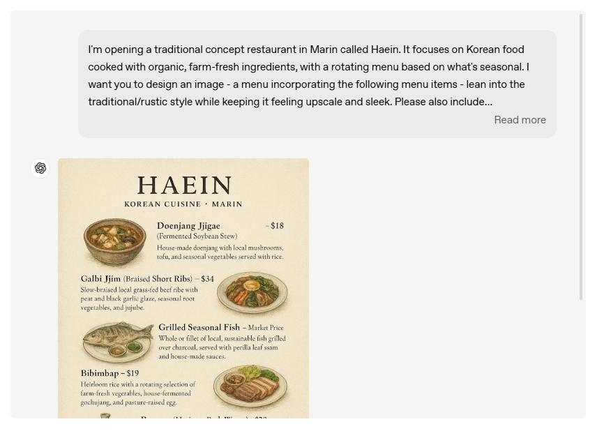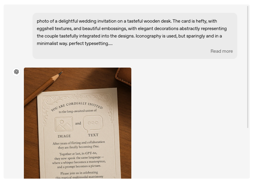 - 텍스트 통합 개선: 예전 AI 모델은 읽기 쉽고 잘 배치된 텍스트를 넣기 어려웠는데, GPT-4o는 이제 단어를 이미지 안에 정확하게 넣을 수 있어요.
