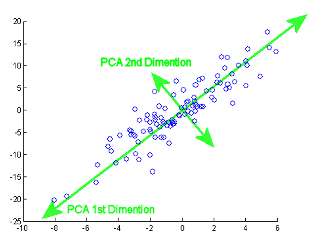 - 2차원 벡터를 1차원 벡터로 축소시키는 최적의 방법은 variance를 최대로 만들어주는 eigenvector에 정사영 시키는 것