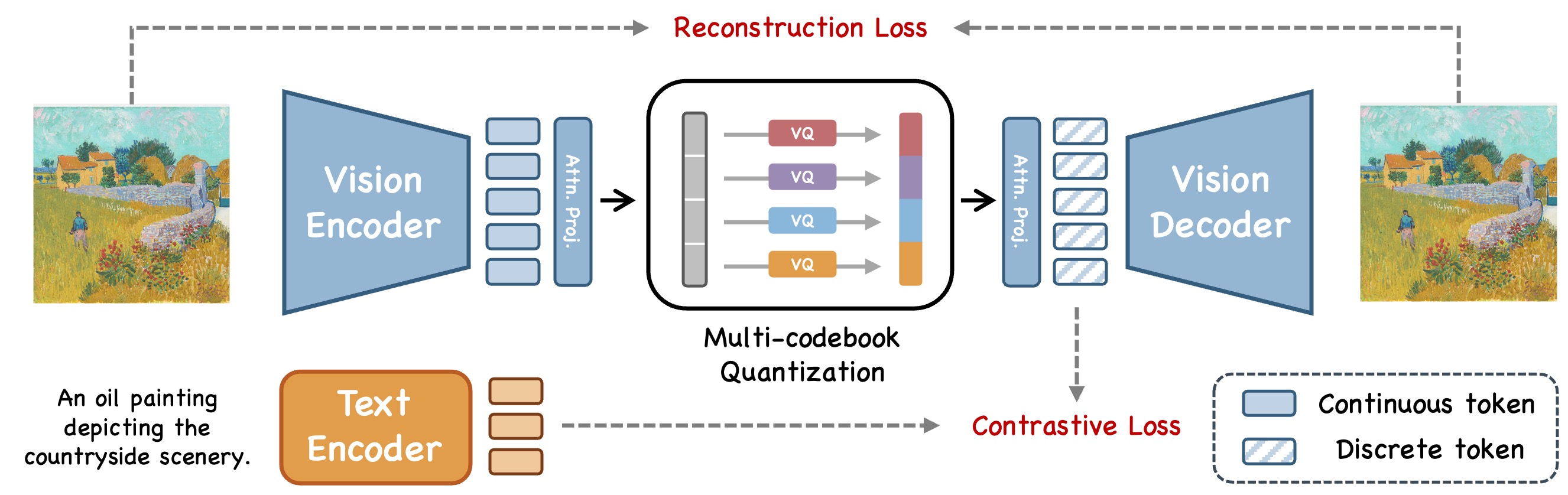 - 토큰 출력 (Discrete Tokens Output)