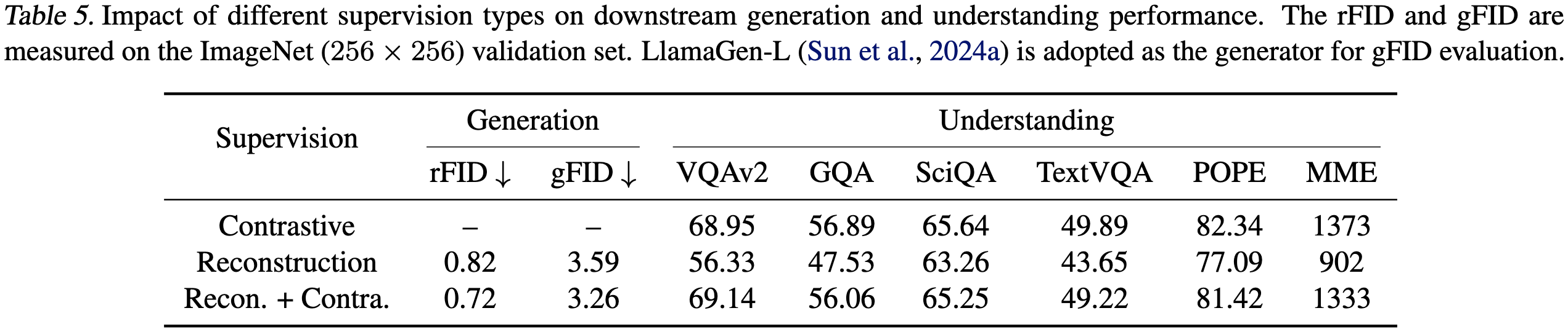 | 모델 | 이미지 생성 성능 (rFID ↓) | 이미지 이해 성능 (Zero-shot Accuracy ↑) |