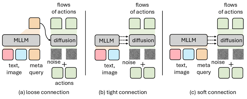 VLA 모델의 핵심은 시각적 입력과 텍스트 명령을 어떻게 물리적 행동 토큰으로 변환하느냐에 있습니다. VLANeXt는 기존 Decoder-only 방식의 한계를 극복하기 위해 다양한 연결 구조를 실험했습니다.