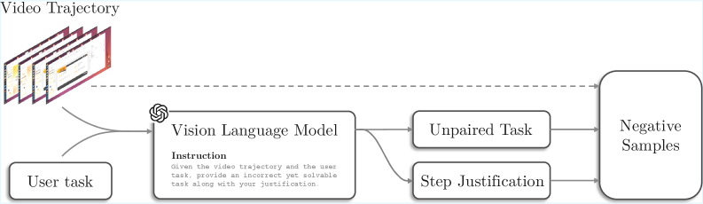 특히 주목할 점은 Adversarial Instruction Translation입니다. 모델을 멍청하게 만드는 ‘쉬운 실패’ 데이터가 아니라, 성공한 영상에 대해 “사실은 이런 조건이었다면 이건 실패야”라고 지시문을 살짝 비틀어(예: ‘파일을 다운로드하라’ -> ‘파일을 삭제하라’) 모델이 미세한 UI 차이를 학습하게 만든 것이 신의 한 수였습니다.