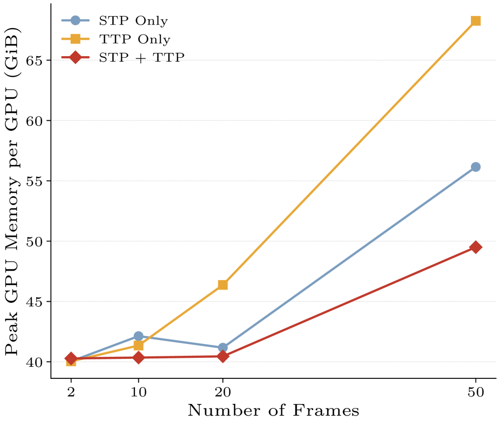 효율성 분석 결과입니다. STP 덕분에 긴 영상에서도 메모리 점유율이 안정적이며, 추론 속도 또한 실시간 에이전트 피드백을 주기에 충분한 수준입니다.