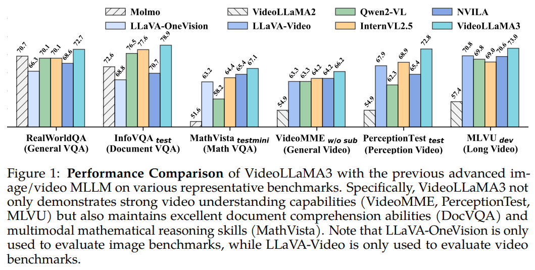 VideoLLaMA 3는 최신 멀티모달 AI 모델 중 최강의 성능을 제공하며, 특히 비디오 및 이미지 이해에서 강력한 성능을 발휘합니다.