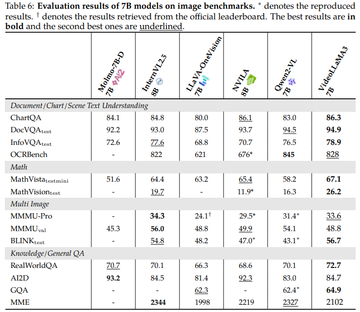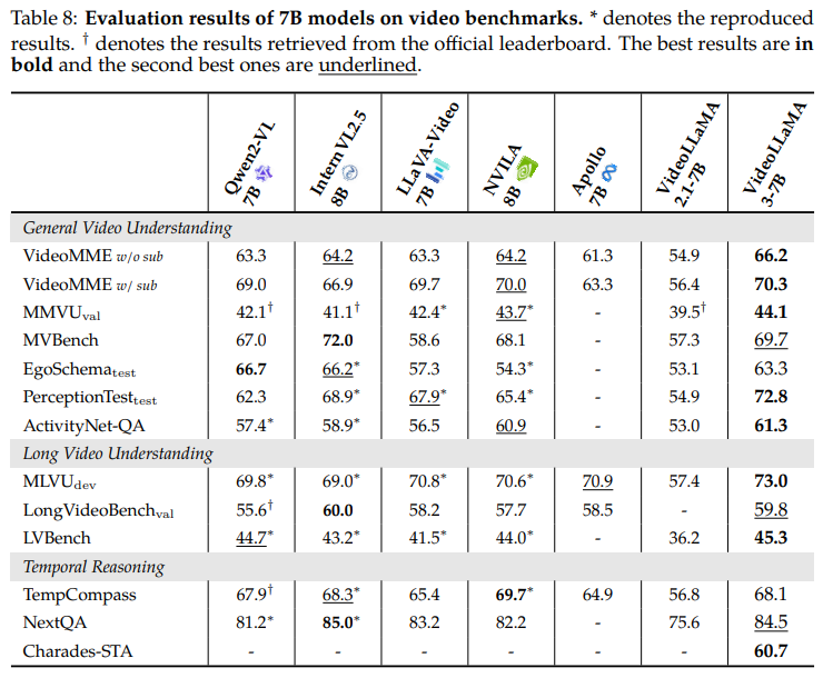 | VideoLLaMA 3 (7B) | 86.3 | 94.9 | 67.1 | 33.6 | 72.7 |