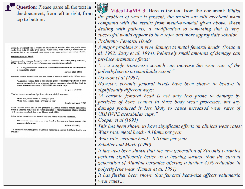 📌 VideoLLaMA 3의 답변: “문서에서 읽은 주요 내용은…”