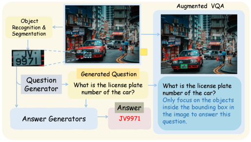 - 입력: 전체 이미지 + 타겟 영역 좌표 + 증류된 질문