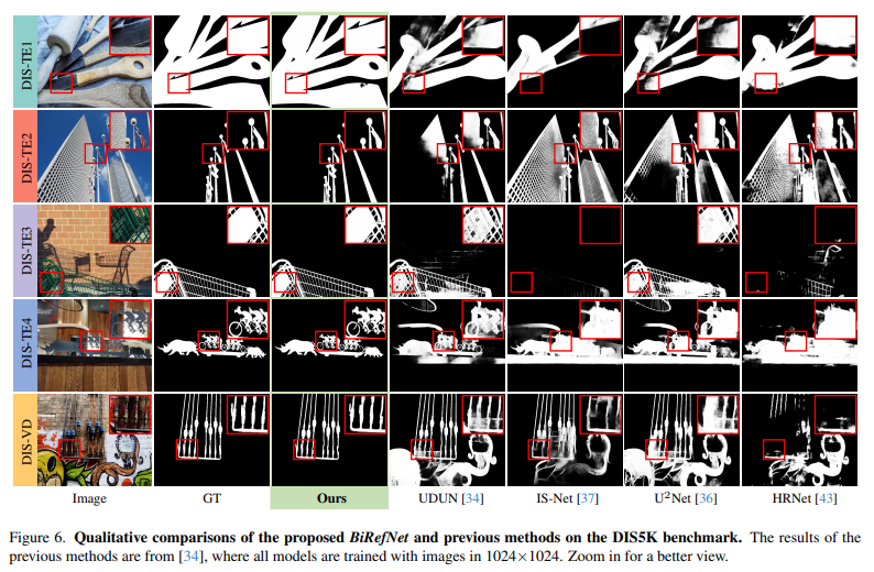 BiRefNet은 UDUN 대비 Sm 6.8% 향상을 보이며, 특히 복잡한 텍스처와 미세한 구조가 있는 이미지에서 우수한 성능을 보입니다.