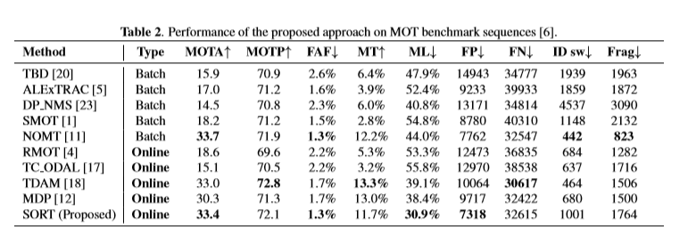 Kalman filter,Hungarian method이 각각 tracking 문제의 움직임 예측과 데이터 연관요소를 처리하는데 사용된다. 이 논문에서의 접근법은 다양한 환경에서 human tracking에서만 사용하지만 다른 object에서도 가능하다.